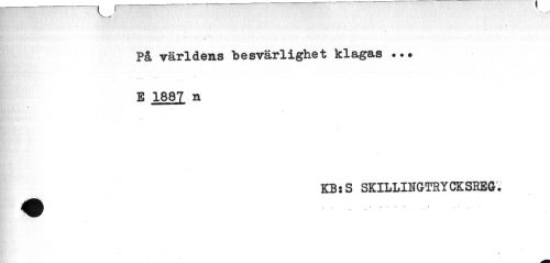 //// V.." //// På världens besvärlighet klagas //// 1 1887 a //// KB 5 S SKILLllfGrTRY CK SBEG • //// / ////