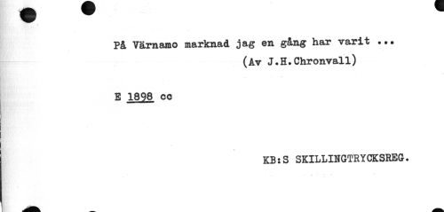 //// På Värnamo marknad jag en gång har varit ••• //// (Av J.H.Chronvall) //// E 1898 co //// KB:S SKILLINGTRYCKSREG. ////