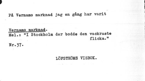 //// j //// På Vemamo marknad jag en gång har varit //// i f //// Vemamo marknad» j //// Mel.: "I Stockholm der bodde den vackraste //// flicka.M //// Nr.37* //// LÖPSTRÖMS VISBOK. ////