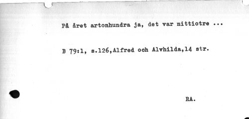 //// v //// På året artonhundra ja, det var nittiotre ... //// B 79:1, s.126,Alfred och Alvhilda,14 str. ^ RA. ////