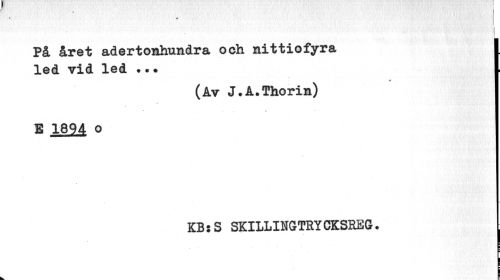 //// N » //// På året adertonhundra och nittiofyra led vid led ?. ? //// (Av J.A.Thorin) //// « //// KBsS SKILLINGTRYCKSRiSG. ////