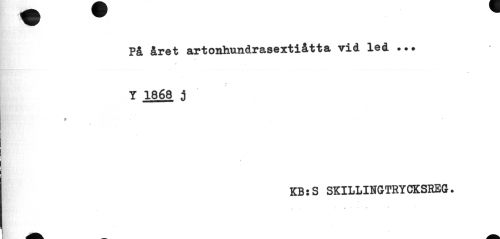 //// På året artonhundrasextiåtta vid led //// * //// Y 1868 j //// t //// KBsS SKILLINGTRYCKSBEG. //// k •• //// f I ////