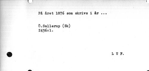 //// _ //// » //// På året 1876 som skrivs i år //// # i //// Ö.Sallerup (Sk) 2436:1. //// ^ L U F. //// i ////