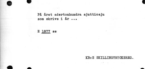 //// På året adertonhundra sjuttiosju som skrivs i år ••? //// E 1877 ss //// KB:S SKILLIUGTRYCKSREG. ////