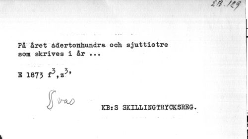 //// > / j //// ¦ //// På året ädertohhundra och sjuttiotre som skrives i år •.• //// E 1873 //// J'lrtU> //// KB:S SKILLINGTRYCKSREG. //// ... ' i //// p //// i m m i- //// i ////