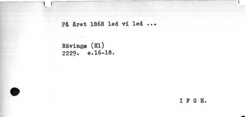 //// \ 9 \ //// På året 1868 led vi led . //// * //// Rävinge (Hl) //// 2229» s.16-18. //// » //// I F G H. //// « //// C >M " ////