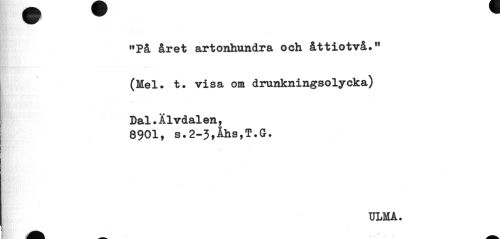 //// MPå året artonhundra och åttiotvå.M (Mel. t. visa om drunkningsolycka) //// Dal.Älvdalen, 8901, s.2-3fÅhs,T.G. //// ULMA. ////