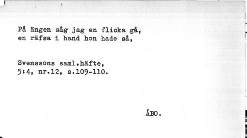 //// r* • //// i //// : //// « //// t //// På ängen såg jag en flicka gå, . //// en räfsa i hand hon hade så, //// i //// Svenssons saral. häfte, nr.12, s.109-110. //// I //// i | //// i i //// ÅBO. 1 //// i //// | //// B //// B //// a ////