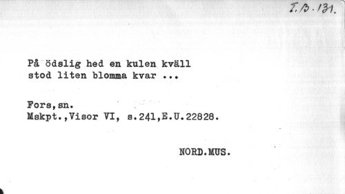 //// é,/t/ • ' crr. //// < ''0 ¦ ¦ //// ! //// s //// På ödslig hed en kulen kväll stod liten blomma kvar ... //// Pors,sn. //// Mskpt.,Visor TI, s.241,E.U.22828. //// NORD. MUS. //// u ////