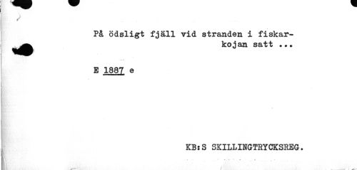 //// } //// På ödsligt fjäll vid stranden i fiskar-^^ kojan satt ? //// i 1887 e //// t //// ¦ //// KB:S SKILLINGTRYCKSREG. ////