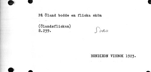 //// På Öland bodde en flicka skön //// jr * //// (ölandsflickan) //// S.239. J ^to //// BENDIXON VISBOK 1923. //// .j i .. .-.• ^^ _ ////
