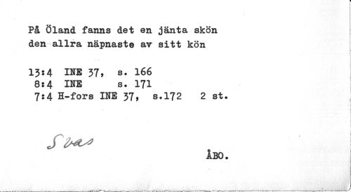 //// På Öland fanns det en jänta skön den allra näpnaste av sitt kön //// ¦ i //// I //// 13:4 INE 37, S. 166 //// 8:4 INE s. 171 | //// 7:4 H-fors INE 37, s.172 2 st. //// i | //// , i //// 1 //// 1 i 1 //// i I //// S \ //// ÅBO. ////