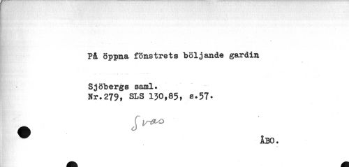 //// > //// På öppna fönstrets böljande gardin Sjöbergs saml. //// Nr.279, SLS 130,85, s.57. //// J \r0U> //// ® ÅBO. ////