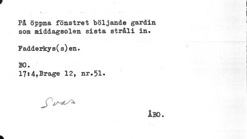 //// ¦ //// i //// På öppna fönstret böljande gardin som middagsolen sista stråli in. //// Fadderkys(s)en. //// BO. ! //// » //// 17:4,Brage 12, nr.51. //// j //// ÅBO. //// k ////