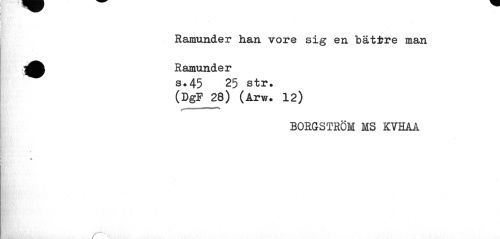 //// Ramunder han vore sig en bättre man j^fc Ramunder //// s#45 25 str. //// (DgP 28) (Arw. 12) //// BORGSTRÖM MS KVHAA ////