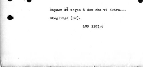 //// e //// Rapsen äx mogen a den ska vi skära.•• ^^ Skeglinge (Sk)# //// LUF 2283:6 //// 4 //// B : ' ' //// I® . ////