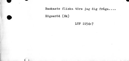 //// Raskaste flicka törs jag dig fråga...» Högseröd (Sk) //// LUF 2254:7 //// Ef" //// ( i ////