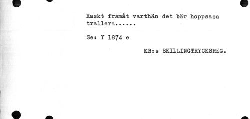 //// Raskt framåt varthän det bär hoppsasa trallera... //// Se: Y 1874 e //// KB:s SKILLINGTRYCKSREG. ////