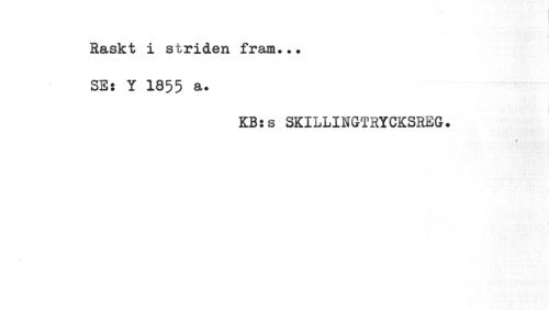 //// i //// Raskt i striden fram... //// SE: Y 1855 a. //// KB: s SKILLINGTRYCKSREG. ////