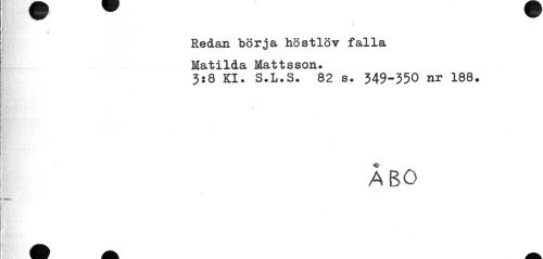 //// y //// % //// Redan börja höstlöv falla Matilda Mattsson. //// 3:8 Kl. S.L.S. 82 s. 349-350 nr 188. //// ÅBO ////