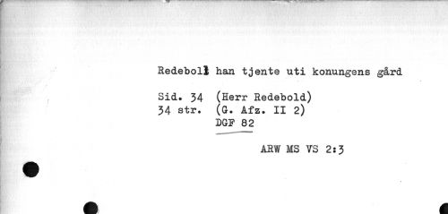 //// »i v '.'Vi1 W' '1 '¦ ?r ' »¦*'-••'•• .'•'•;' //// >* ' / • " ' //// RedebolJ han tjente uti konungens gård //// | f Sid. 34 (Herr Redebold) //// 34 str. (G. Afz. II 2) //// DGP 82 //// ARW MS VS 2s 3 ////