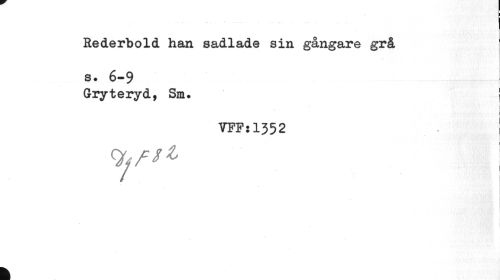 //// Rederbold han sadlade sin gångare grå //// s. 6-9 //// Gryteryd, Sm. j //// i //// VFF:1352 //// 1 //// k ////