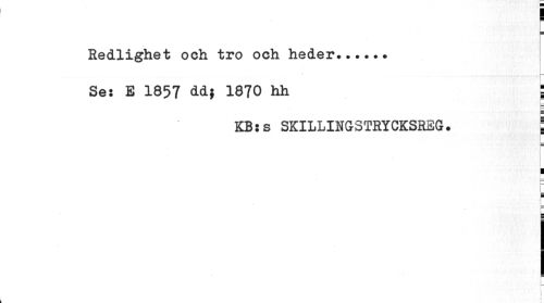 //// I //// Redlighet och tro och heder... //// _ //// Se: E 1857 <*dj 1870 hh ! //// I //// i //// KBss SKILLINGSTRYCKSREG. \ //// m //// r ¦ //// j= //// z //// l ////