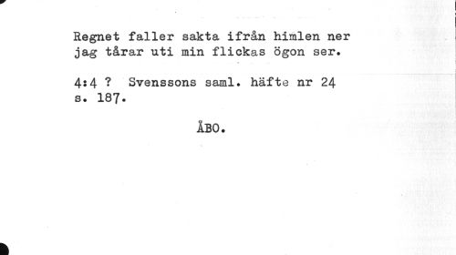 //// ...i //// i //// Regnet faller sakta ifrån himlen ner jag tårar uti min flickas ögon ser. //// 4:4 ? Svenssons saml. häfte nr 24 //// s. 187. //// ÅBO. //// t //// k ////