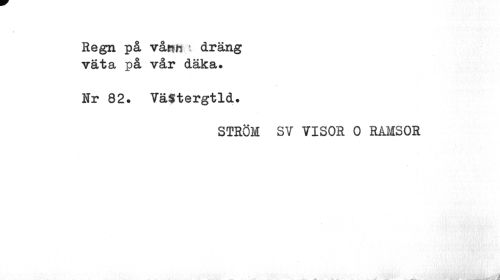 //// Regn på våtth i dräng väta på vår däka. //// Hr 82. VäStergtld. //// STRÖM SV VISOR O RAMSOR //// ... w i • .. • " J ////