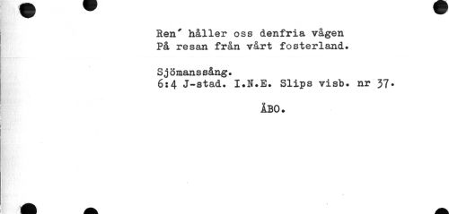 //// Ren' håller oss denfria vågen På resan från vårt fosterland» //// Sjömanssång. //// 6:4 J-stad. I.N.E. Slips visb. nr 37. //// ÅBO. //// % //// 4 ////