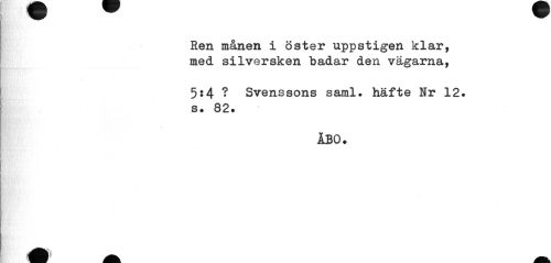 //// Ren månen i öster uppstigen klar, med silversken badar den vägarna, //// 5:4 ? Svenssons saml. häfte Nr 12. s. 82. //// ÅBO. ////