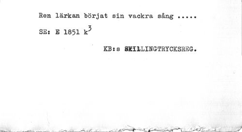 //// Ren lärkan börjat sin vackra sång ... //// SE: E 1851 k5 //// KB:s SKI3LLINGTRYCKSRBG. ////