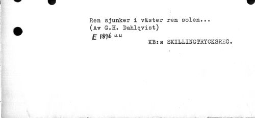 //// * //// Ren sjunker i väster ren solen... A (Av G.H. Dahlqvist) //// E fSfé> H.U //// KBi s SKILLINGTRYCKSRSG. //// f //// å ////