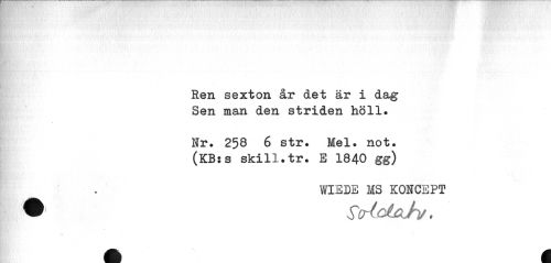 //// Ren sexton år det är i dag Sen man den striden höll. //// Nr. 258 6 str. Mel. not. (KB:s skill.tr. E 1840 gg) //// WIEDE MS KONCEPT //// • Strtc&Ji/. //// « i ////
