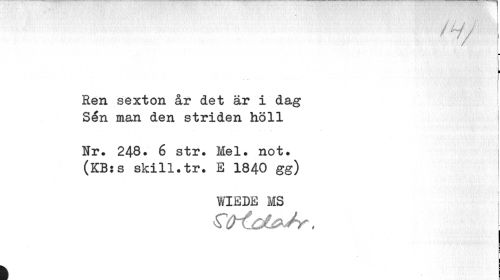 //// !H/ //// i //// Ren sexton år det är i dag Sen man den striden höll //// \ //// Nr. 248. 6 str. Mel. not. (KB:s skill.tr. E 1840 gg) //// WIEDE MS I //// 1 //// i ////