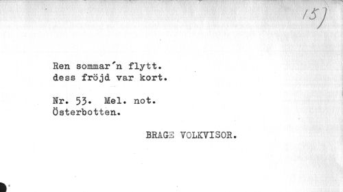 //// ,SJ //// Ren sommar'n flytt, dess fröjd var kort. //// V //// Nr. 53* Mel. not. Österbotten. //// ¦ .tå'- ¦ //// BRAGS tolkvisor. ////