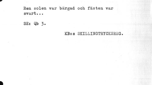 //// Ren solen var bärgad och fästen var svart... //// SEs Qb 3. //// KB:s SKILLINGTRYCKSREG. //// S //// f //// % ////