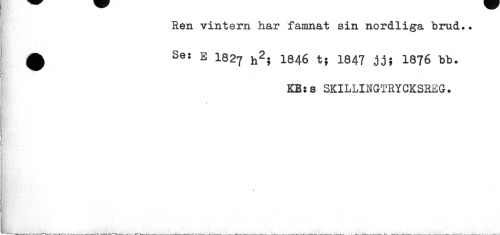 //// Ren vintern har famnat sin nordliga brud.. //// A Se: E I827 h2? 1846 t? 1847 jjj 1876 bb. //// KB:s SKILLINGTRYCKSREG. //// » ////