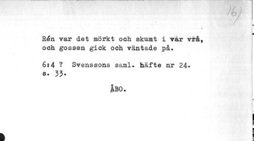 //// / //// t ... ¦ .. ...I . .'..• • . . . ii //// Ren var det mörkt och skumt i var vrå, och gossen gick och väntade på. //// 6:4 ? Svenssons saml. häfte nr 24* s. 33* //// Ibo. //// u_ //// p //// 1 j //// | //// C //// I ////