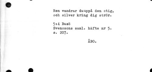 //// Ren vandrar duuppå den stig, och silver kring dig strör. //// 5:4 Busö //// Svenssons saml. häfte nr 5* //// s. 207. //// ÅBO. ////