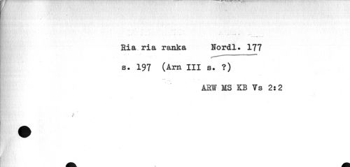 //// ? * '«,V //// ... ...: //// Ria ria ranka Nordl. 177 s. 197 (Arn III s. ?) //// ARW MS KB Vs 2:2 //// r ////