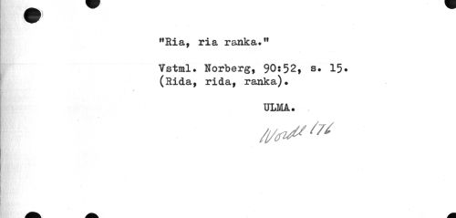 //// "Ria, ria ranka." //// Vstml. Norberg, 90:52, s. 15. (Rida, rida, ranka)• //// « //// ULMA. . ////