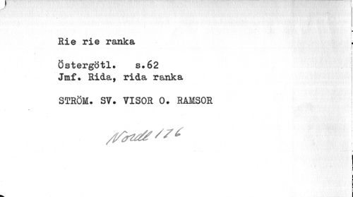 //// ¦ //// Rie rie ranka //// i //// ... . .| //// ! //// i //// Qstergötl. s.62 I //// Jmf. Rida, rida ranka //// STRÖM. SV» VISOR 0. RAMSOR //// f //// 1 i //// I //// i //// I 1 //// G //// i //// 1 ¦ //// i //// i //// I ////