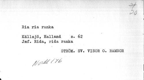 //// 26 . //// K //// Eia ria ranka //// < //// Källsjö, Halland s. 62 Jmf. Rida, rida ranka //// STRÖM. SV. VISOR 0. RAMSOR j //// i //// r i //// i ////