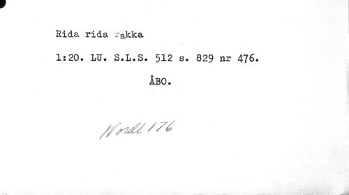 //// j //// Rida rida rakka //// 1:20. LU. S.L.S. 512 s. 829 nr 476. //// ÅBO. //// 1 ////