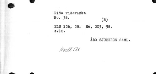 //// Rida ridaranka No. 38. //// SLS 126, 28. R6, 203, 38. s.12. //// ÅBO SJÖBERGS SAML. //// M/u ////