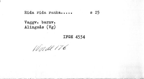//// Rida rida ranka... s 25 //// Vaggv. barnv. Alingsås (Vg) //// IFGH 4534 ////
