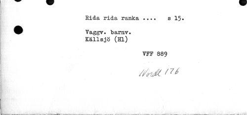 //// Rida rida ranka ... s 15. //// Vaggv. barnv. Källsjö (Hl) //// VFF 889 ////