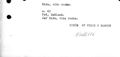 //// Rida, rida ranka, s. 62 //// Vrå, Småland. //// Jmf Rida, rida ranka. //// ström sv visor o ramsor ////