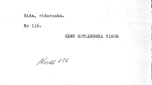 //// F= | //// Rida, ridaranka. //// Hr 116. i //// E //// SÄWB GOTLÄNDSKA VISOR i //// ¦ //// ¦ //// k //// I //// t ////